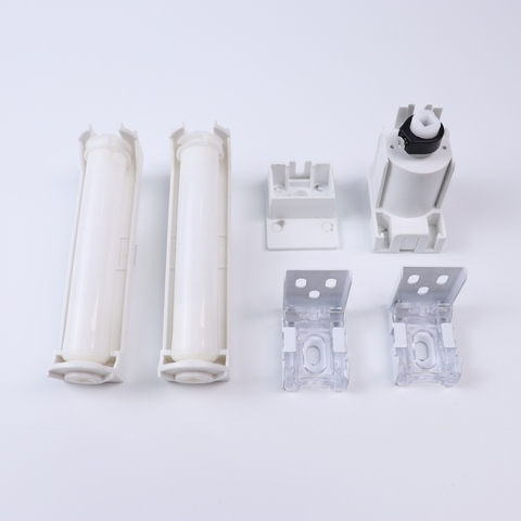 Componentes de persiana enrollable de plástico, cadena transparente y caja de amarre, etiqueta de seguridad, mecanismo de rodillo pequeño, componentes de persiana pc